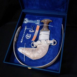 A key characteristic of the dishdasha is its comfortable and loose fit, allowing for ease of movement and providing ventilation in the hot desert climate. It is typically worn with a white or colored head covering, called the “kumma” or “mussar,” and sandals, known as “sandal” or “na’al.” The dishdasha is not only a symbol of Omani cultural identity but also reflects the practical considerations of comfort and functionality in the country’s climate. Whether worn in daily life or during special occasions, the dishdasha stands as a timeless representation of Omani tradition and grace